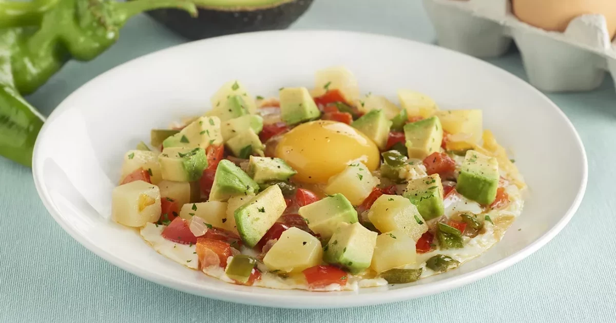 Huevos con verduritas y aguacate