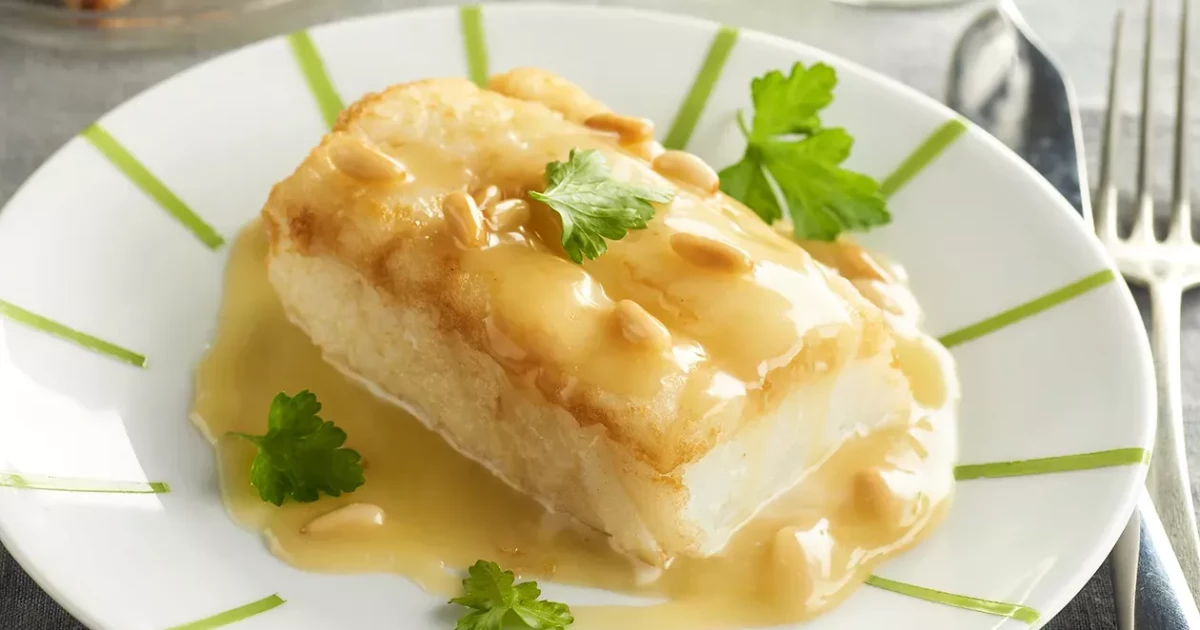 Bacalao con crema de piñones